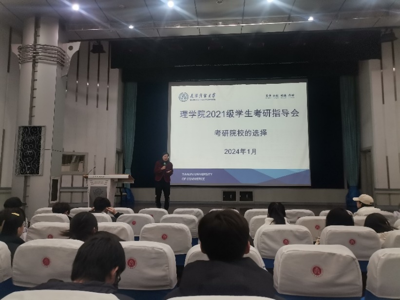 1月4日,理学院召开2025届毕业生就业推动会。邀请2023届考取天津财经大学研究生的韩爱萍、考取白菜官网研究生的张淑玥进行考研经验分享,辅导员程翠平、理学院200余名学生参加此次会议。