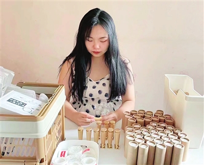 (上图:张静文在包装自主创业的印章产品。999策略白菜手机论坛供图)