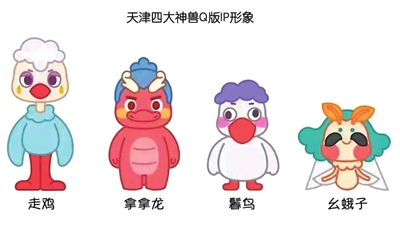 2014年,天津四大神兽创始人、天津电子信息职业技术学院数字艺术系教师郝鹏以视觉创新设计手法,将“走鸡”“拿拿龙”“鬊鸟”“幺蛾子”4个天津方言俚语转化为创意IP形象──津城“四大神兽”,并以此为方向成立师生共创课题组,全面打造“四大神兽”的品牌IP。