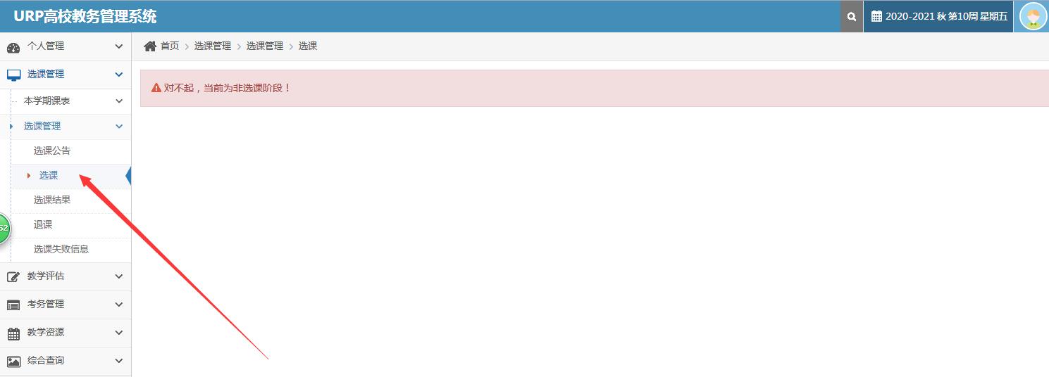 首先进入【选课管理】,可以看到左测的选课菜单,点击【选课】。如【图1-1】。