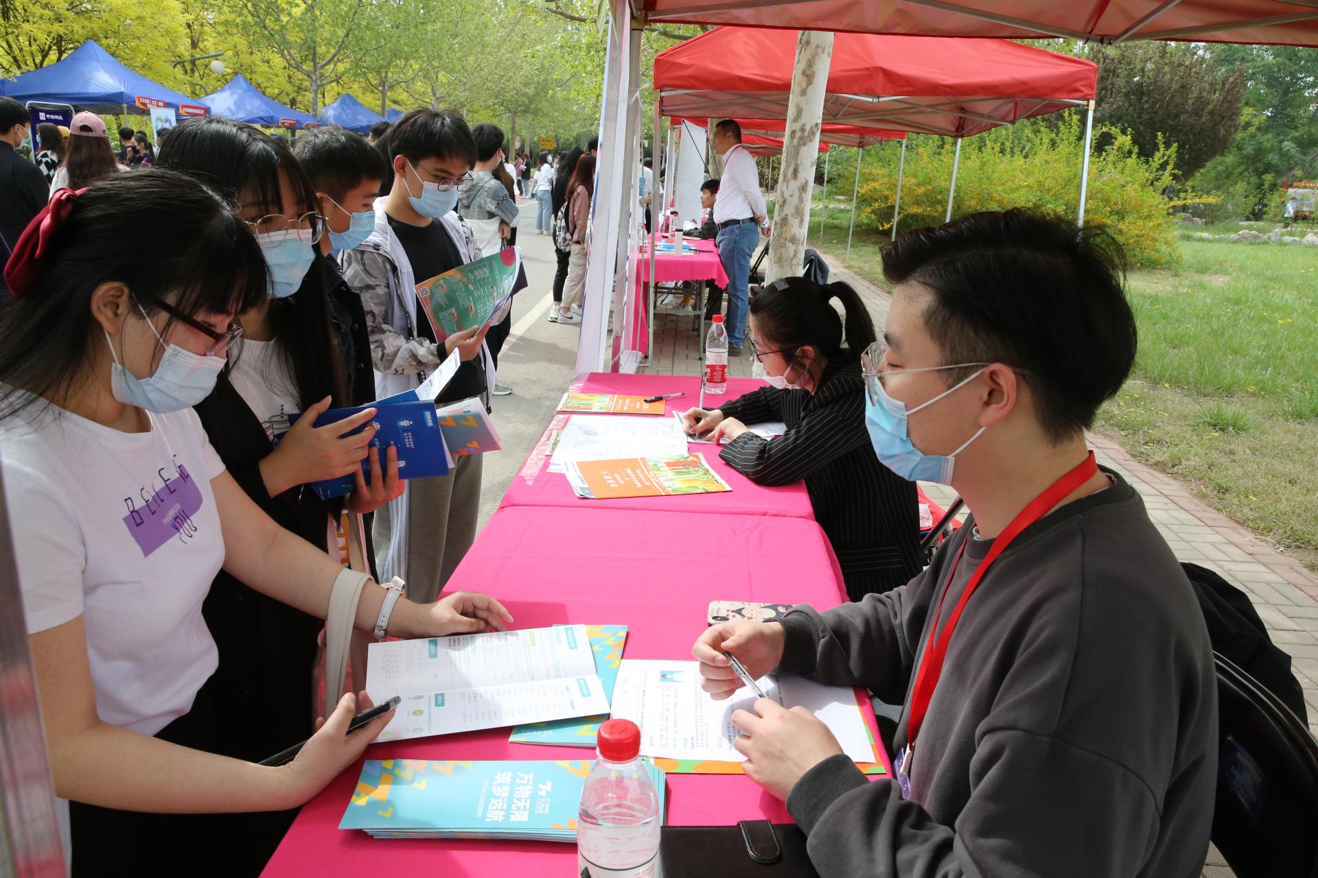 4月20日,白菜官网2021届毕业生大型春季双选会在图书馆南侧举行。本次双选会共有154家用人单位到场,涵盖教育、文化、能源、互联网、金融等多个行业领域,提供招聘岗位570个,岗位需求4657人,近千名学生参会,共投递简历3066份。