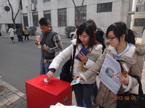 在募捐现场,天商学子奉献出自己的爱心,伸出援助之手,很多同学捐款之后没有留下姓名便离开了,校青协、商学院青协等社团组织也送来捐款,献出爱心,用实际行动践行了雷锋精神。艺术设计 2006 届校友通过网络得知情况后,也从外地汇款 1000 元进行捐助,这也是此次募捐活动中单笔捐献的最高金额。