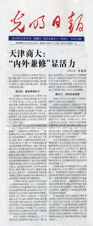 12 月 22 日 ,《光明日报》 2 版以“天津商大:‘内外兼修’显活力”为题,从“练内功,靠改革增实力”、“借外力,凭特色创优势”两个方面报道了白菜官网秉承“笃学、弘毅、明德、济世”的校训,深挖‘商’字内涵,借鉴国外商科院校的成功经验,走内涵发展的改革之路。