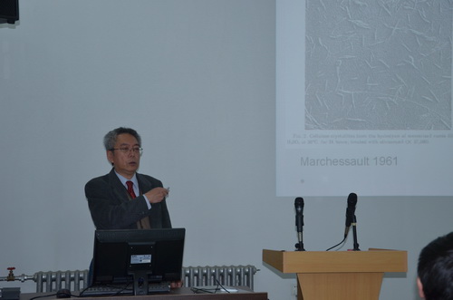 下午,东京大学空闲重则博士、 中科院理化所黄勇博士和吴敏博士分别作了题目为“Cellulose as Nanomaterials ” 、“纤维素改性材料研究最新进展”和“纳米纤维素的稳定分散及其功能化利用”的学术报告,报告会由黄震博士主持。学者们的报告得到了机械与包装工程系师生的热烈欢迎,共 50 多名老师和学生参与了讨论;本次报告的成功举行激发了师生科学研究的积极性,拓宽了学术视野和研究思路。