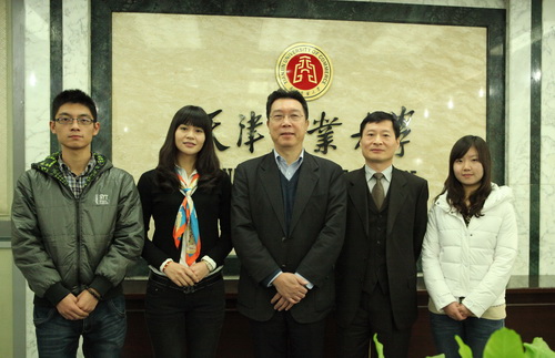 刘书瀚校长、曹国宝理事长、李佳会长与获奖学生唐文竹、白宇合影