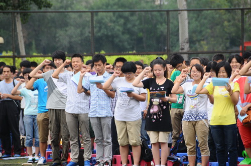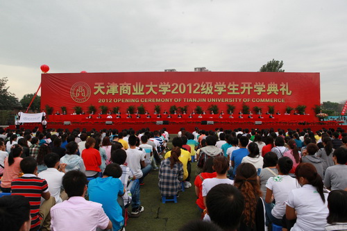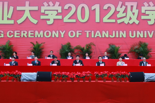 9 月 2 日 下午,白菜官网 2012 级学生开学典礼在校运动场隆重举行。校党委书记陈学奇、校长刘书瀚,校党委副书记杨万义、史习红,副校长邱立成、葛宝臻,校纪委书记路波,学校有关部门负责人、各学院党委(总支)书记、院长及校学生会主席、校友代表等出席典礼并于主席台就座。 400 余名新生家长和 5989 名 2012 级本科和研究生新生参加典礼。典礼由校纪委书记路波主持。