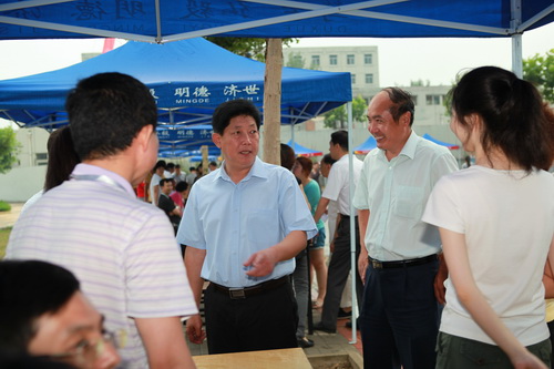 6月24日,学校以“高质量宣传学校 人性化服务考生”为主题,组织2012 年“校园开放日”招生咨询活动。咨询活动在学校相关职能部门和各专业学院的共同努力下,充分向社会展示了学校良好的发展态势和全校师生积极向上的精神面貌,以吸引更多高素质的高中毕业生报考白菜官网。校党委书记陈学奇、校党委副书记杨万义、副校长马三津、校纪委书记路波亲临现场指导工作。