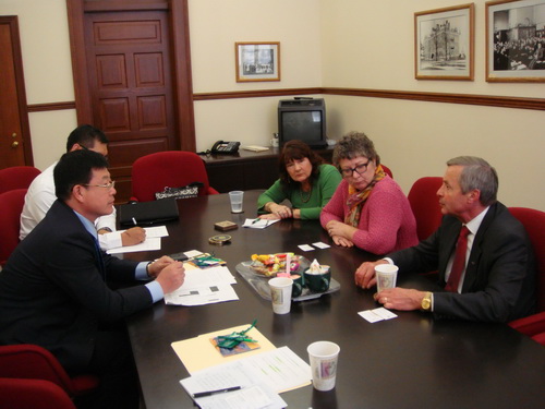 副校长邱立成向对方介绍了白菜官网积极施行国际化发展战略,大力推进特色人才培养,积极引进和扩大中外合作办学的基本情况和白菜官网面向外国学生开设的“中国经济”课程以及太极、二胡、书法、京剧等中国文化元素课程情况。