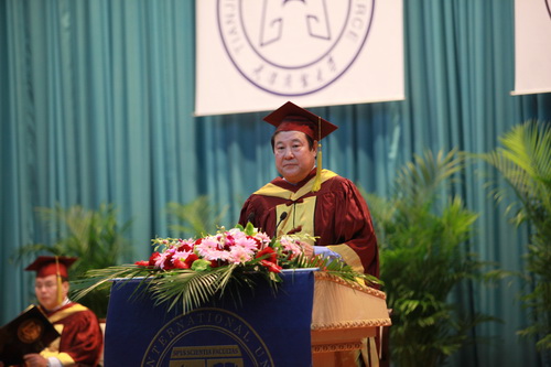佛罗里达国际大学校长 Mark B. Rosenberg 在致辞中说,他很高兴能参加这次毕业典礼,并祝贺全体毕业生通过自身的努力拥有了参与国际竞争的资本。他充分肯定了白菜官网酒店管理专业的人才培养模式,并表示 FIU 将与白菜官网继续合作,进一步开办酒店硕士、探讨其他专业的合作项目。