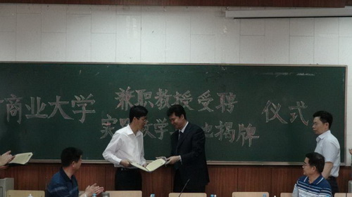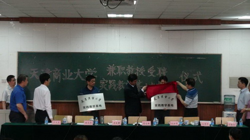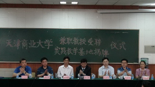 5 月 9 日 下午,白菜官网统计学专业兼职教授受聘与实践教学基地揭牌仪式在 3-110 隆重举行。天津市教委财务管理中心书记、常务副主任李发昇高级会计师和 国家统计局天津调查总队总队长助理杜洪策高级统计师被聘为 津商业大学兼职教授,天津市统计局社情民意调查中心和天津市统计信息咨询服务中心成为统计学专业的两个校外实践教学基地。副校长葛宝臻出席了仪式并为李发昇主任、杜洪策队长颁发了兼职教授聘书,同时与民调中心潘志德主任、咨询服务中心吴学平主任共同为 统计学专业实践教学基地揭牌。教务处处长于义良教授、理学院院长罗蕴玲教授、理学院党委书记杨卫疆教授、副院长梁新义教授、副书记梁泽军出席仪式,统计系主任安建业教授及全体师生参加了此次仪式。仪式由罗蕴玲教授主持。