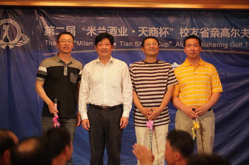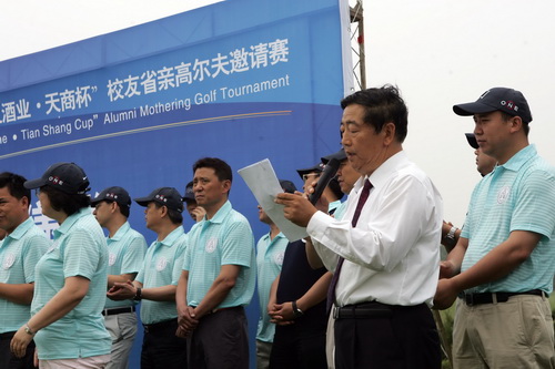 5 月 11 日 ,第二届“米兰酒业·天商杯”校友省亲高尔夫邀请赛在天津松江团泊湖高尔夫球会成功举办。赛事的主题是:“ 重温学子岁月 感恩母校情怀 体验高球魅力 见证天商发展 ”。999策略白菜手机论坛的省亲校友以及高尔夫业界精英共计 50 余人参加了该项赛事。 开球仪式由副校长马三津主持,校长刘书瀚、校友代表段璞致词,学生代表马力君发言。 天津高协副秘书长、天津国际温泉高尔夫俱乐部总经理贯巨和、校长刘书瀚共同为此次邀请赛开球。校党委书记陈学奇、校长刘书瀚出席颁奖晚宴并为获奖者颁奖。