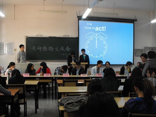 4月27日下午,信息工程学院在3教 214室举行了2011年考研经验交流会。学院党委副书记王艳军、学工办主任郭君伟出席,与同学们进行经验交流并给予具体指导。