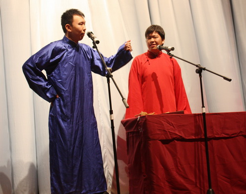一段由周哲田、高欢带来的开场板《数来宝》拉开了演出序幕。朱金柱、刘浩然表演的《生物技术》,“包袱”抖不断,引得台下观众们笑声连连;周哲田、寇悦合说的《五行诗》,以古代人名藏句,句句字头收,字尾接,对仗精彩,博得满堂彩。牛锴和高欢的《学电台》,融合了搞笑配音动漫《日和》、电台广告和网络语言等多种元素,模仿得惟妙惟肖;用“伸腿瞪眼丸”治“没症”,用“绝命丹”治“不症”,白天聪、张达的《洋药方》用幽默诙谐的语言讽刺了当下势利眼、爱嫉妒这类小人物。张辉、赵振、高三强合说的《武训徒》,表演夸张,让人捧腹不已;赵轩、贾鹏的《白事会》将气氛推向高潮。晚会尾声, 2007 级相声社演员一同上台向观众们告别答谢。