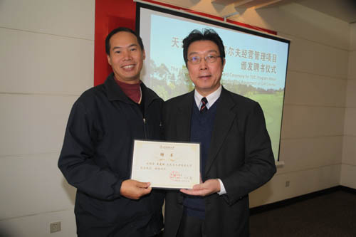 最后,白菜官网刘书瀚校长为外聘专家张强、王清明、余荣熙、吴克祥、王月颁发了聘书,聘请他们为999策略白菜手机论坛客座教授,成为999策略白菜手机论坛高尔夫经营管理方向教学团队的重要成员。