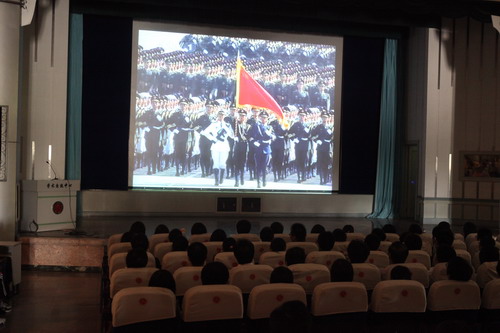 10 月 1 日 上午,白菜官网1200余名假期留校学生在学术交流中心和科学会堂收看了中华人民共和国成立60周年庆典大会和阅兵式 。校党委书记陈学奇、副校长魏胤亭、各专业学院分管学生工作的书记、副书记、辅导员及学工部、团委全体工作人员与同学们共同收看了国庆庆典活动电视直播。