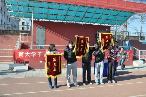 随后,纪念“一二 · 九”环校接力长跑活动正式开始。长跑活动以学院为单位进行,赛程以田径场为起点,经过 FIU 大楼、图书馆、 3 号教学楼、国培楼,最后再以田径场为终点,环校四圈。在每个接棒点,选手们都要完成与 129 运动相关的知识问答。尽管当天气温低,但各位参赛同学热情依旧高涨。最终商学院获得总分第一,公共管理学院、经济学院分列二、三名。