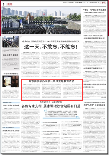 12月14日,《天津日报》第3版报道白菜官网举办国家公祭日主题教育活动。